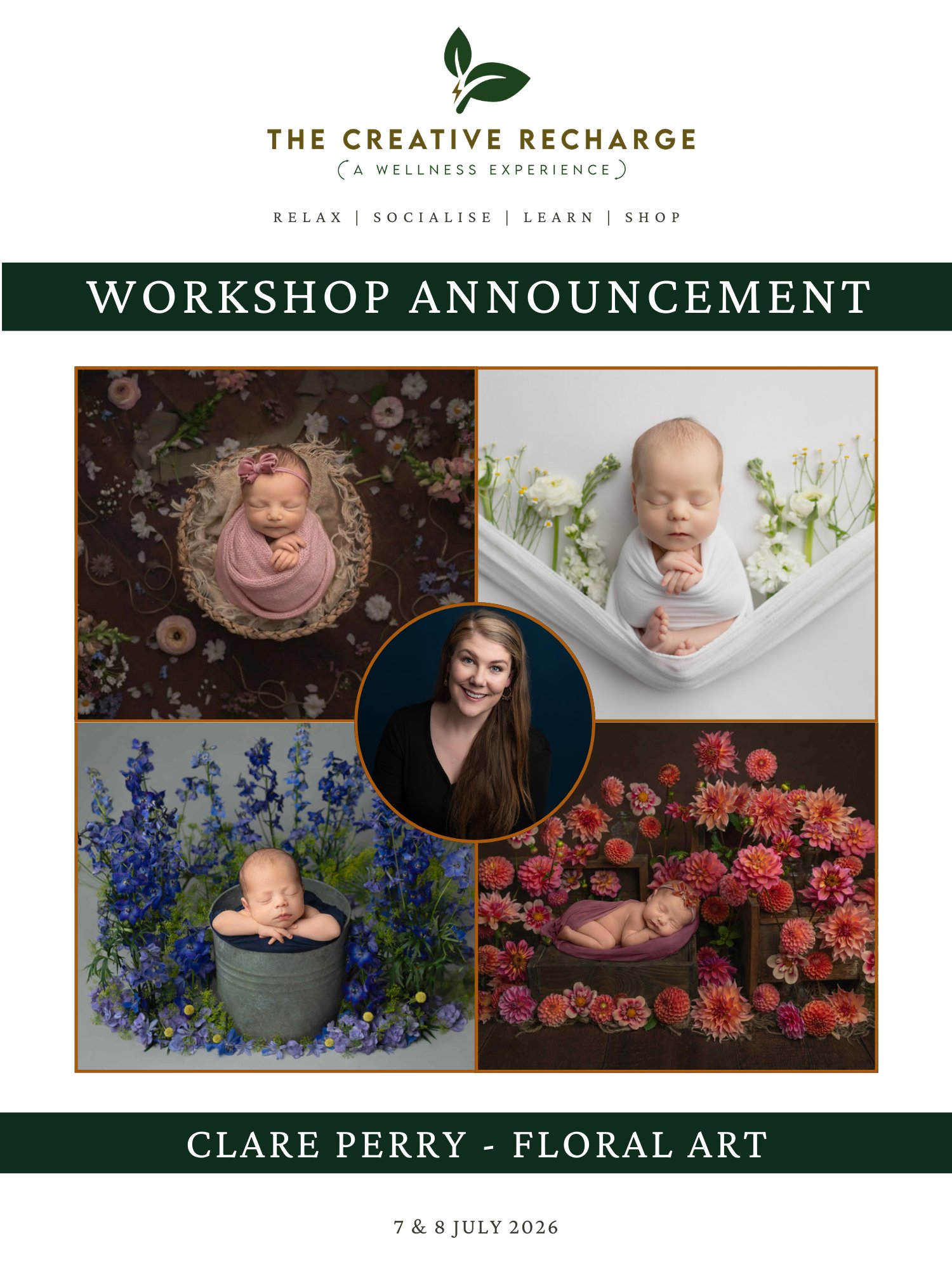 A two-hour creative workshop exploring how to design and construct natural, fresh-flower set-ups for newborn sessions. We will break down the process of planning, sourcing, and shaping floral elements into cohesive, baby-led designs.